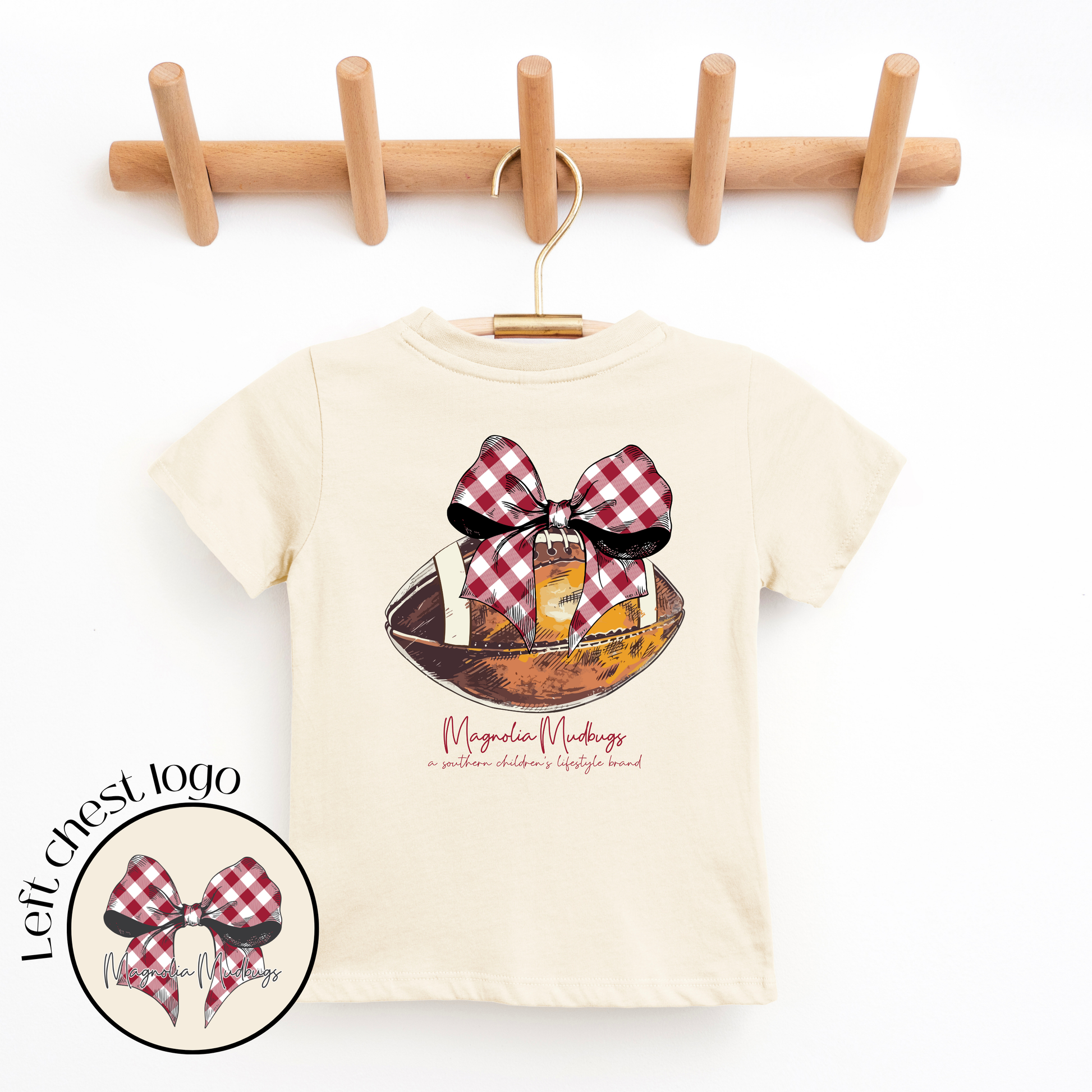 *PREORDER* Gingham Bow | Crimson | Football Kid’s Tee