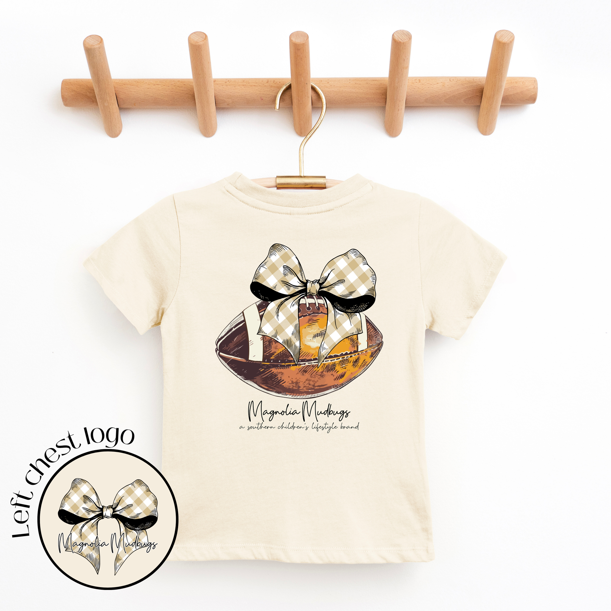 *PREORDER* Gingham Bow | Gold | Football Kid’s Tee