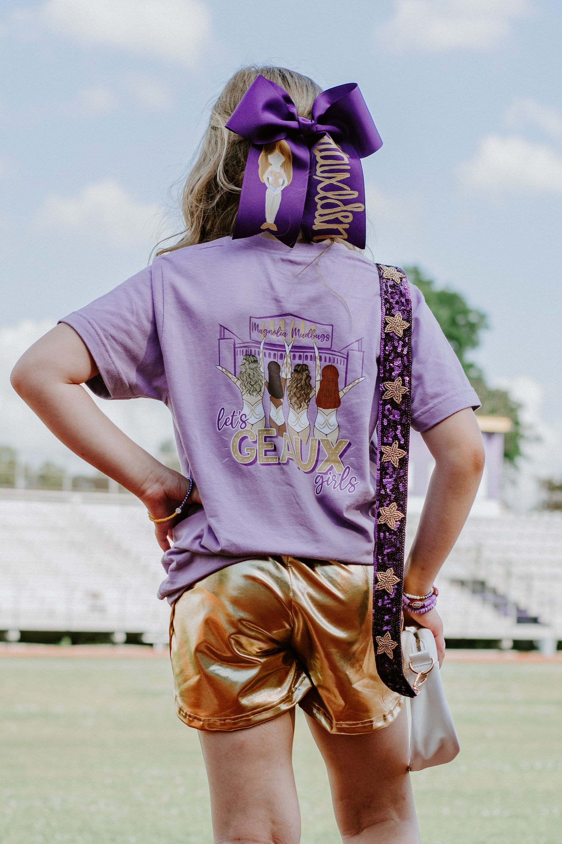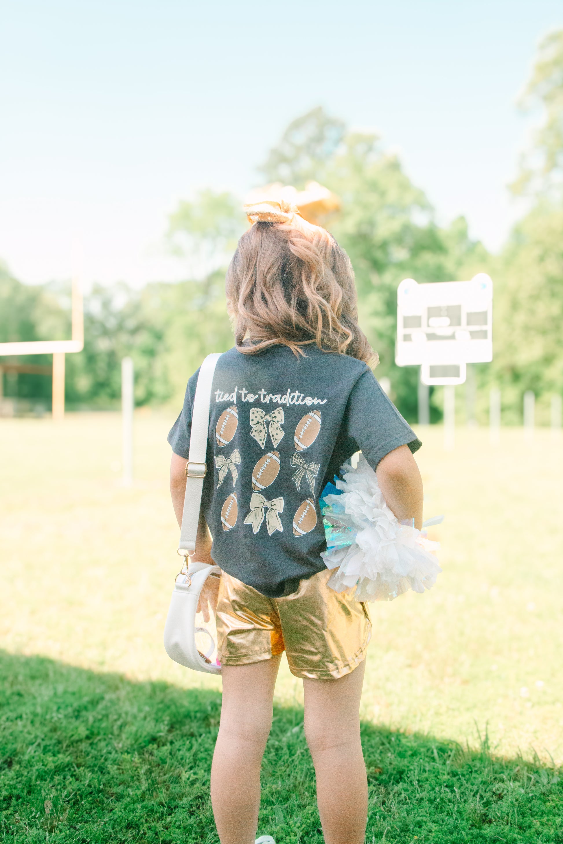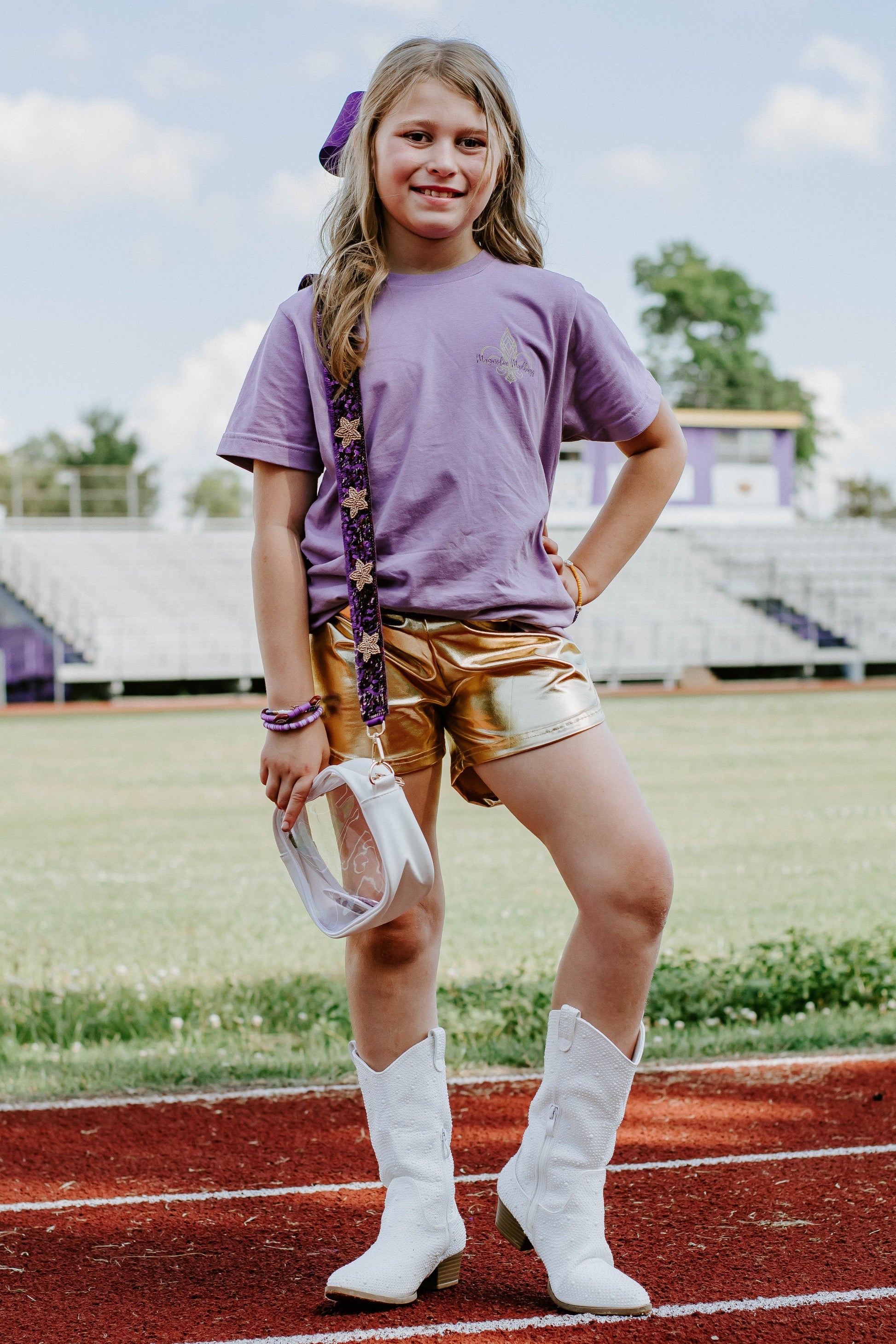 Make a bold statement on game day with these eye-catching gold metallic shorts. Featuring a soft elastic waistband, they ensure a perfect, comfortable, true to size fit. Stylish and cozy, these shorts are available in toddler to youth sizes!