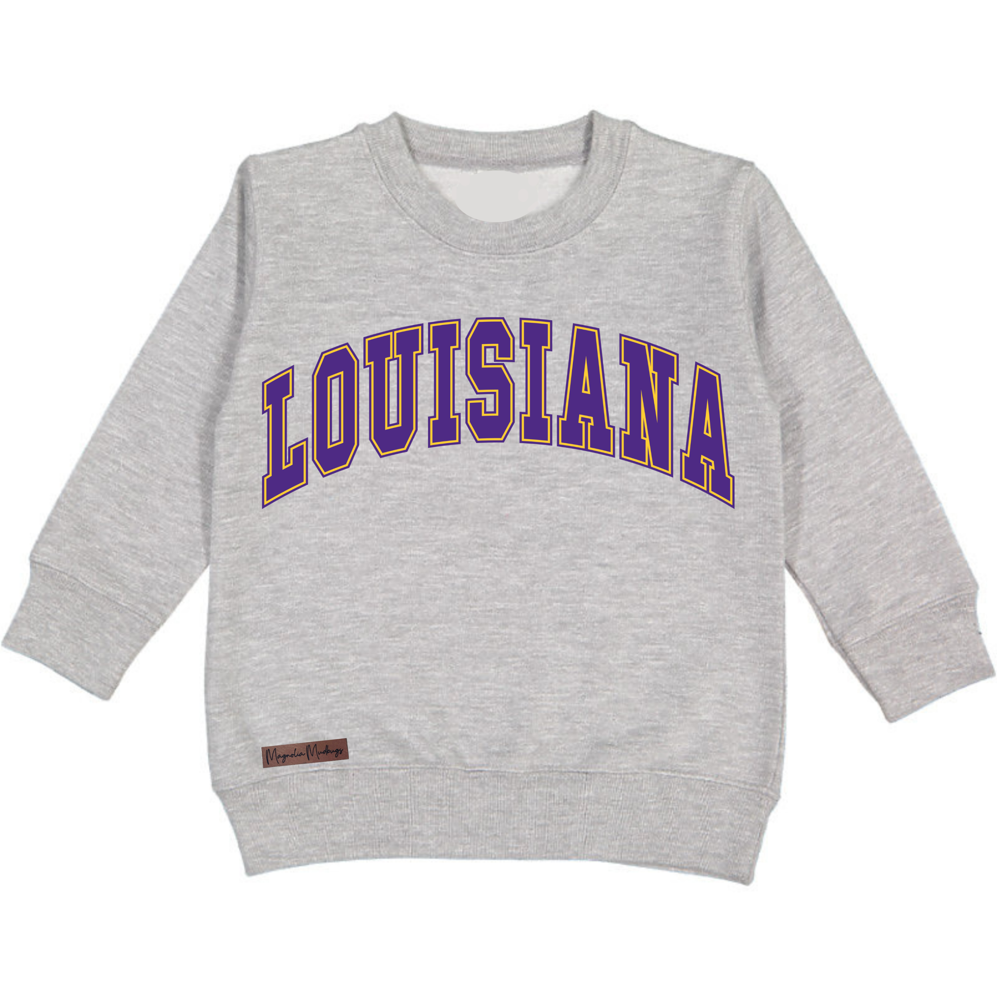 *PREORDER* Louisiana Kids Crewneck Pullover | Purple + Gold