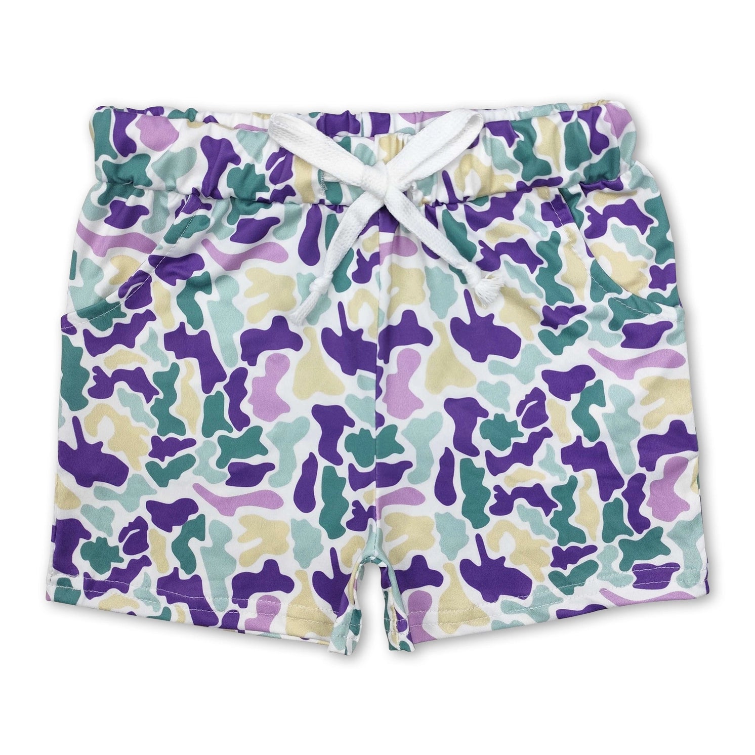 Celebrate the season in style with these festive boy shorts featuring the iconic purple, yellow, and green Mardi Gras color palette in a bold camo pattern. Crafted from soft, stretchy milk silk fabric, they offer comfort and flexibility for active wear. The adjustable drawstring ensures a secure fit, while the true-to-size cut provides a reliable fit—though sizing up one is an option if you prefer additional room.